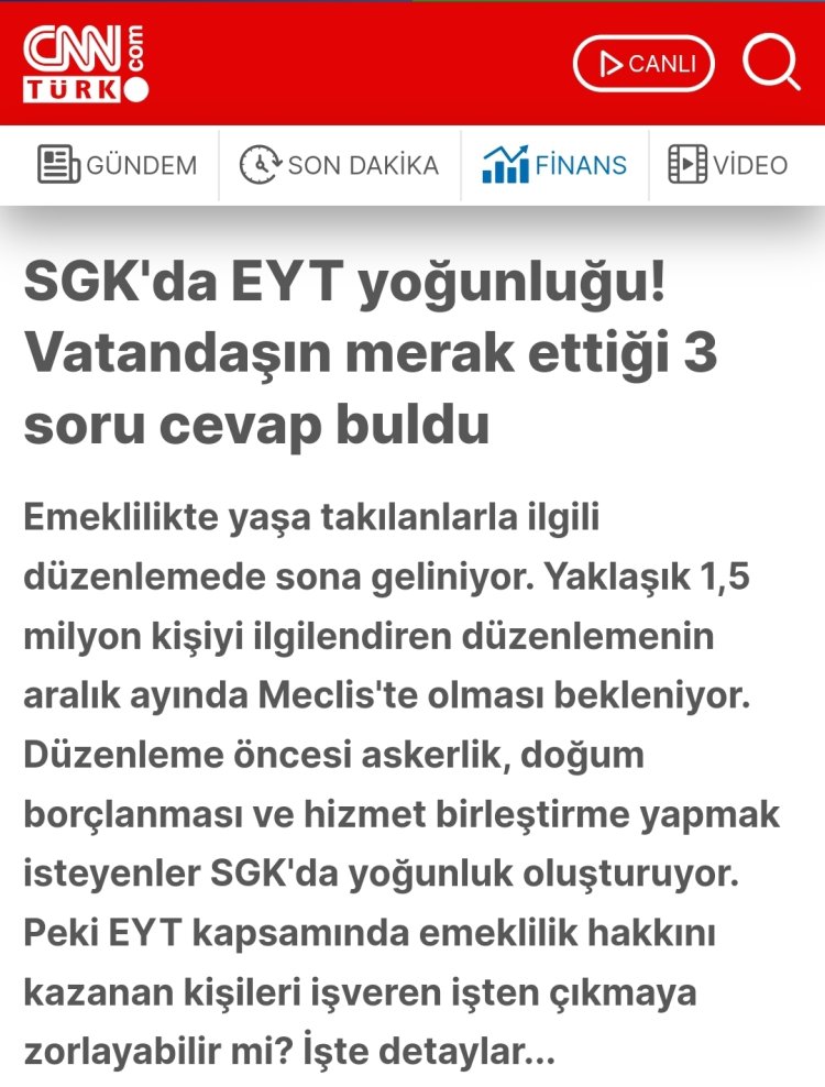 Düzenleme öncesi askerlik, doğum borçlanması ve hizmet birleştirme yapmak isteyenler SGK'da yoğunluk oluşturuyor. Peki EYT kapsamında emeklilik hakkını kazanan kişileri işveren işten çıkmaya zorlayabilir mi? İşte detaylar...